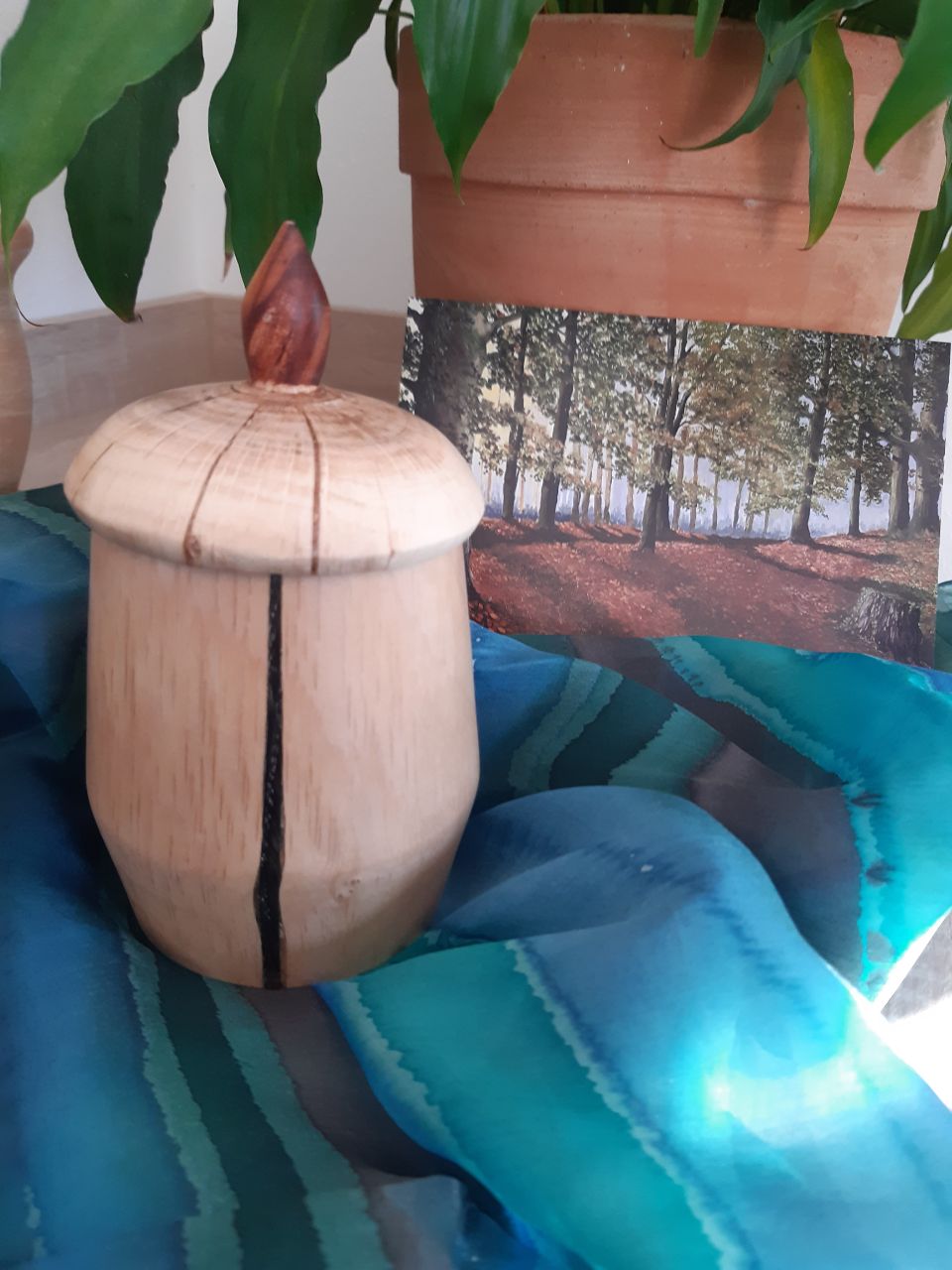 Die dritte Möglichkeit ist natürlich, zu einer fertigen Dose ein passendes Stück Holz zu suchen, um ihr nachträglich einen schönen Deckel zu drehen. Diese Deckel nenne ich „aufgesetzt“ …