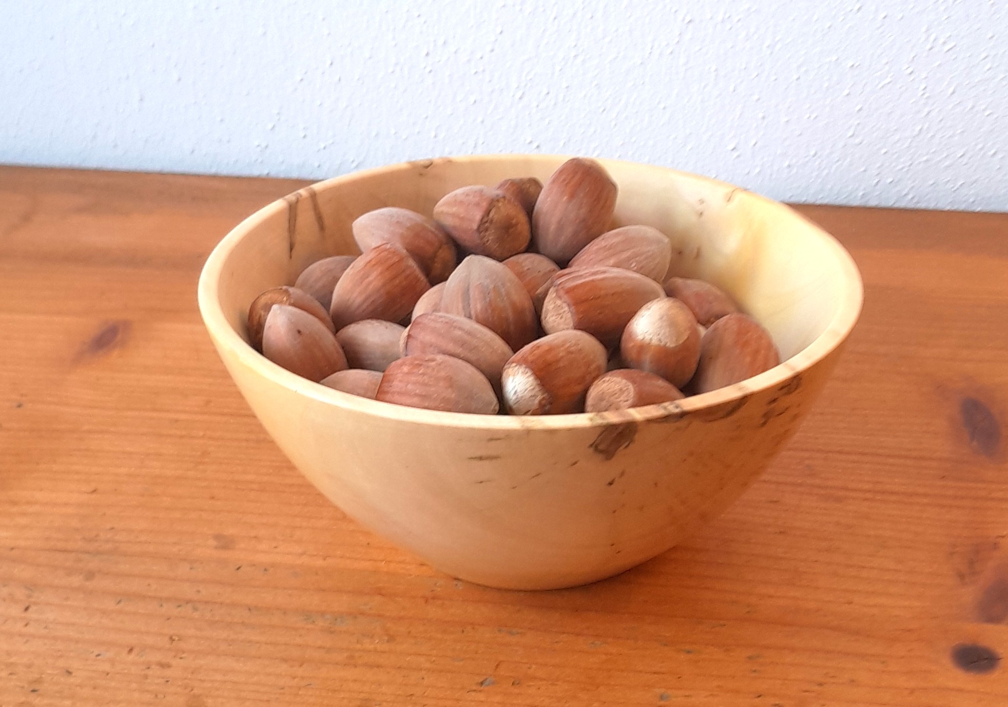Die Schale eignet sich als Obstschale, als Brotschale, zur Aufbewahrung vieler kleiner Gegenstände oder als dekoratives Element auf Ihrem Regal. Die Oberfläche wurde nach dem Drechseln fein geschliffen, mit Hartöl geölt und dann mit Carnaubawachs seidenglänzend poliert.