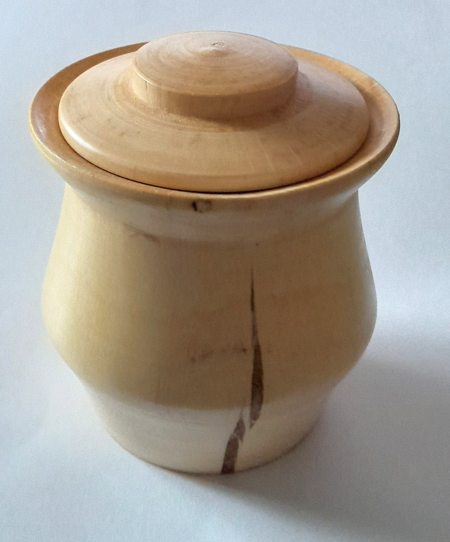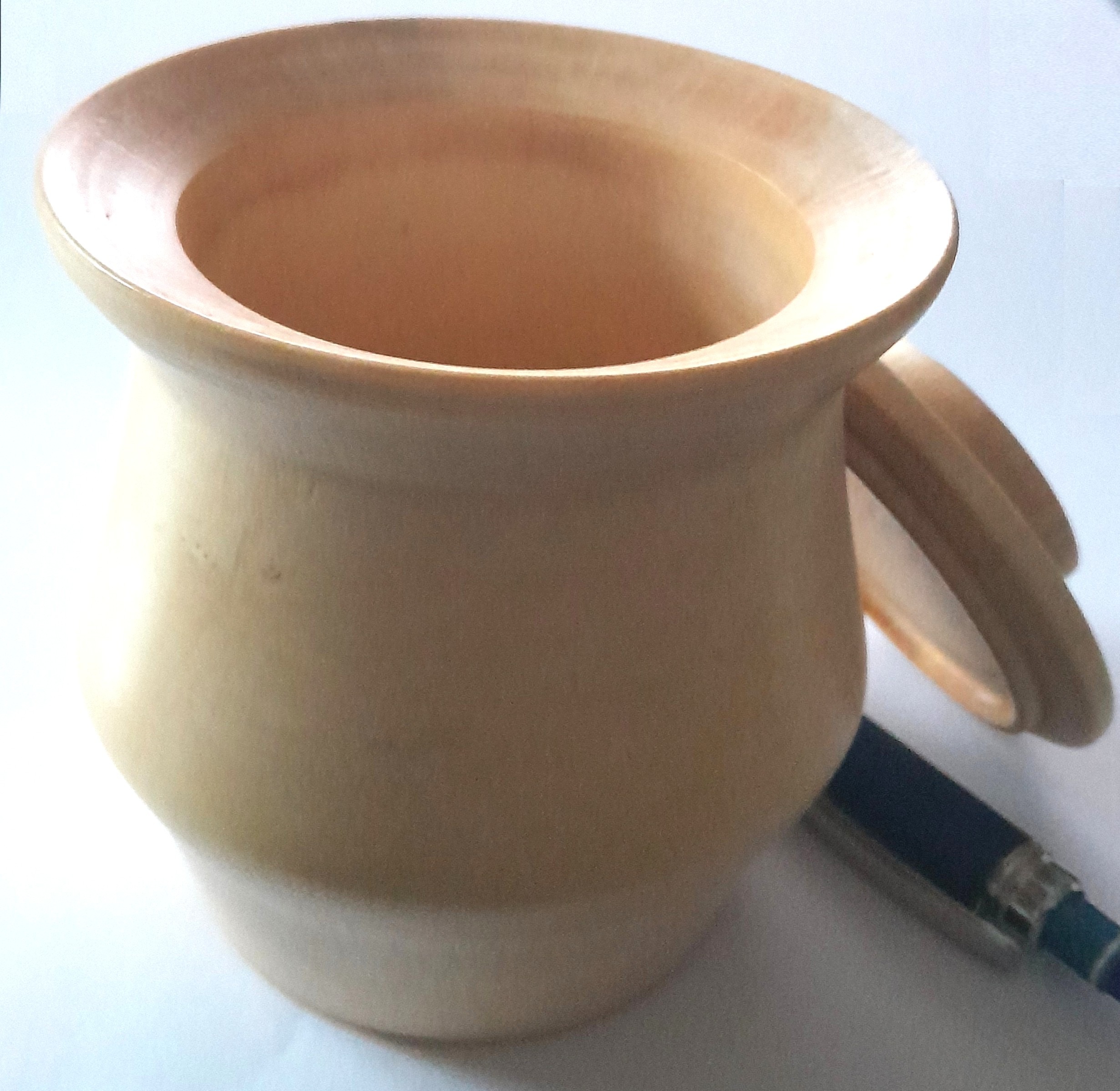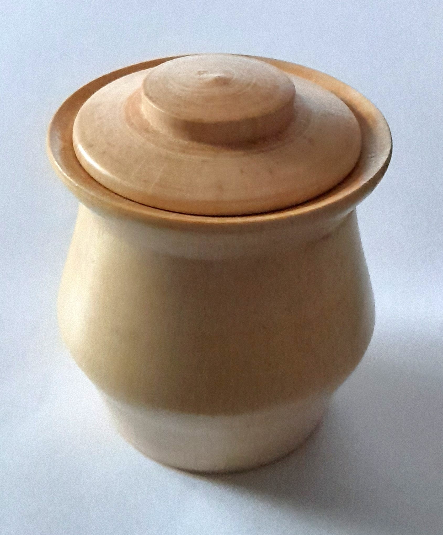 Diese eignet sich zur Aufbewahrung vieler kleiner Gegenstände, als Schmuckkästchen, als Salzfässchen oder Zuckerdose, oder als dekoratives Element auf Ihrem Regal. Die Oberfläche wurde nach dem Drechseln fein geschliffen, mit Hartöl geölt und dann mit Carnaubawachs glänzend poliert.