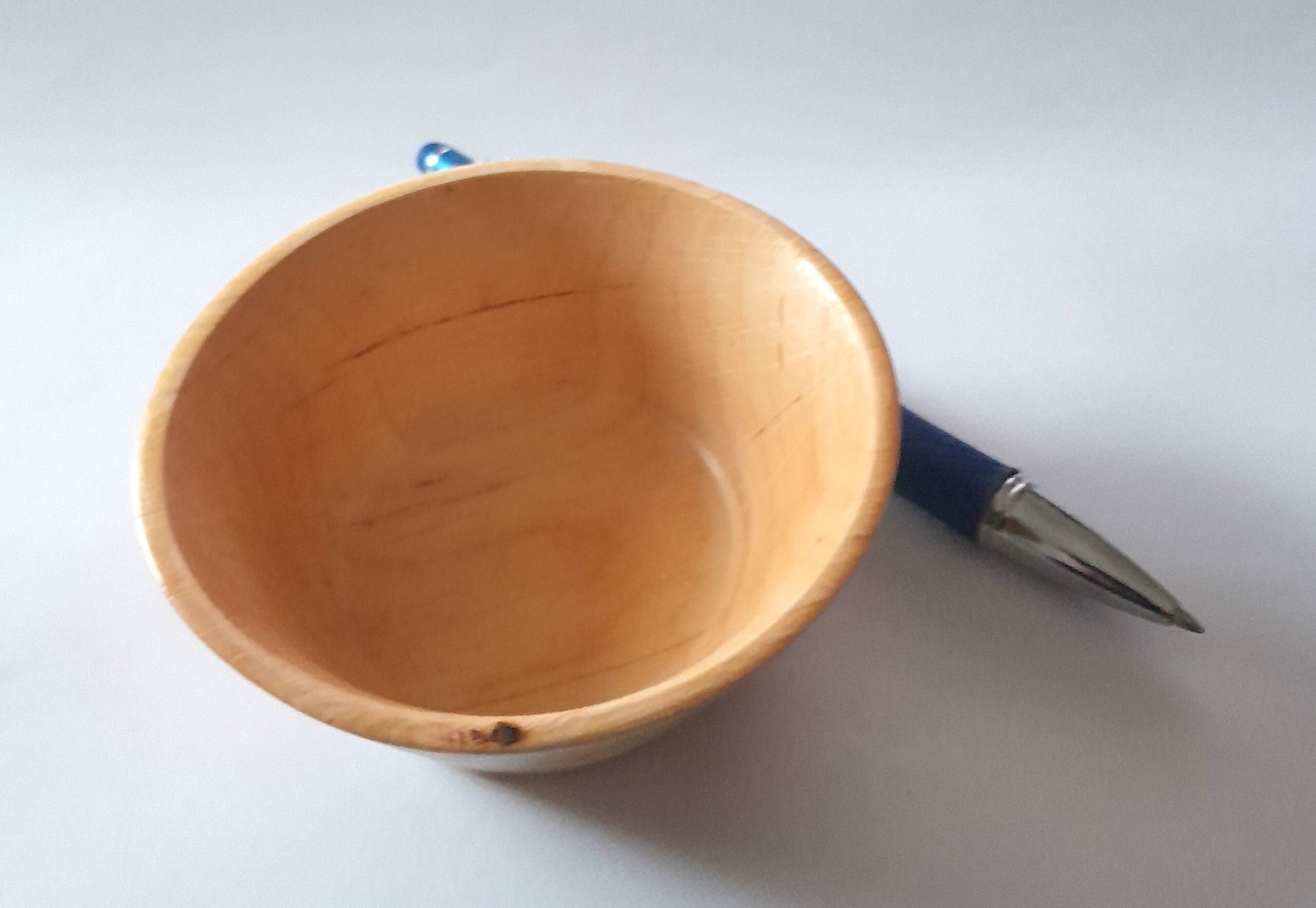 Bewundern Sie die kunstvolle Schönheit dieser von Hand gedrechselten Holzschale aus Ahornholz mit einer wunderschönen Maserung. Die Form verleiht dieser Schale einen einzigartigen Charme und vielseitige Einsatzmöglichkeiten.